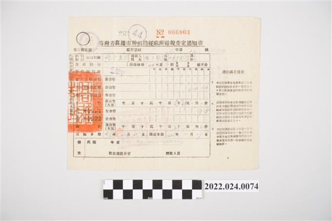 張子敬高雄市稅捐稽征處48年綜合所得稅第1期暫繳稅額繳款書