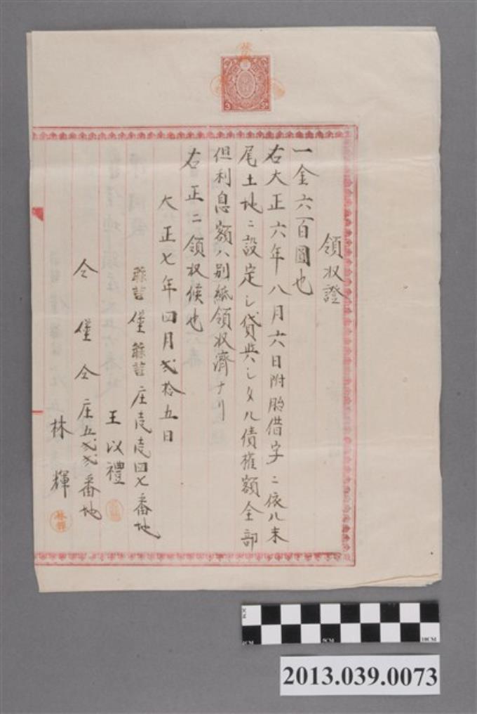 蔴荳堡蔴荳庄王以禮、林輝等人領取證