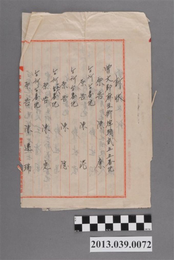陳廉等向臺南地方法院提出對鄭世昌等人之典權消滅訴狀