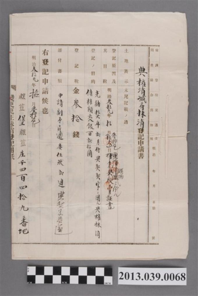 蔴荳堡蔴荳庄嚴為、嚴預等人典權消滅府抹消登記申請書