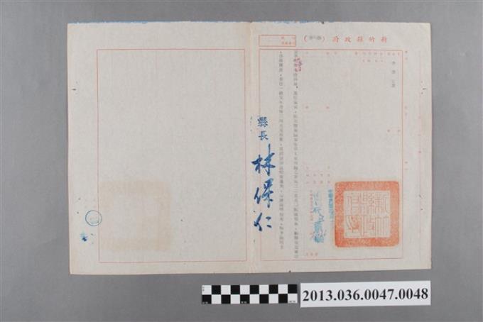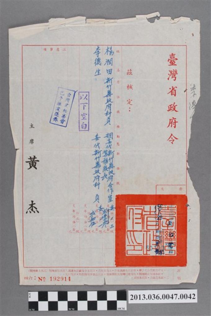 臺灣省政府委代新竹縣政府科員職務動態核定通知書