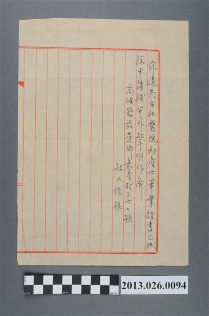 前遺失台北醫院助產士畢業證書乙張除申請補發外聲明作廢聲明書
