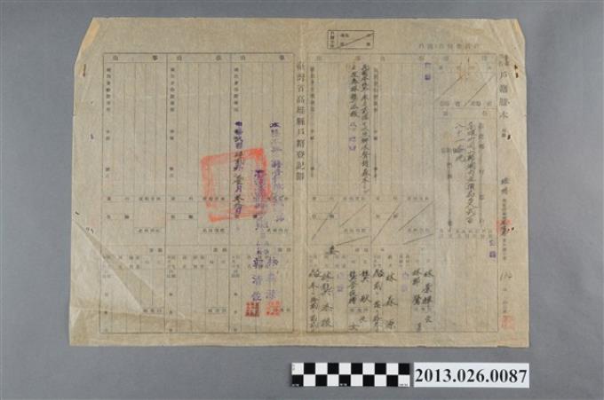 1953年1月30日台灣省高雄縣林龔添根一家戶籍登記簿
