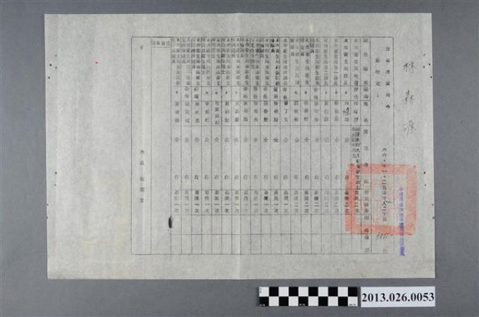 1978年台南市政府獎勵辦理六十六年中秋月餅輔導管理工作優良人員清冊