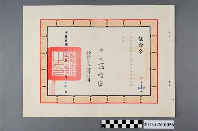 1976年任命林森源為台灣省台南市衛生局秘書任命令
