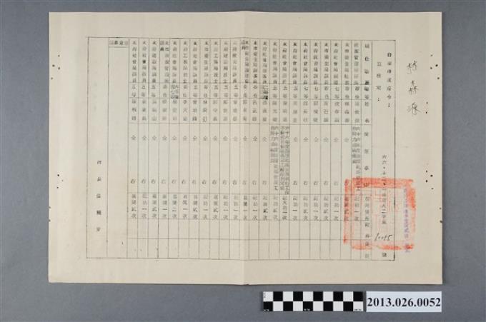 1976年台南市政府令-六十五年度辦理社區發展工作競賽績優有功人員名冊