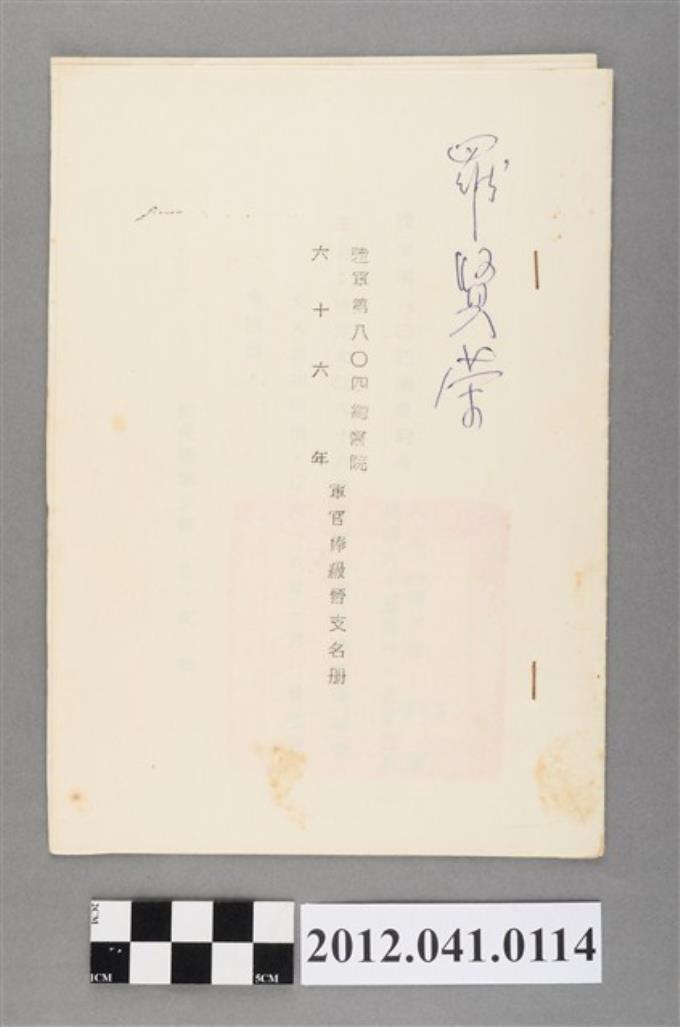 民國65年陸軍第八○四總醫院人事公文