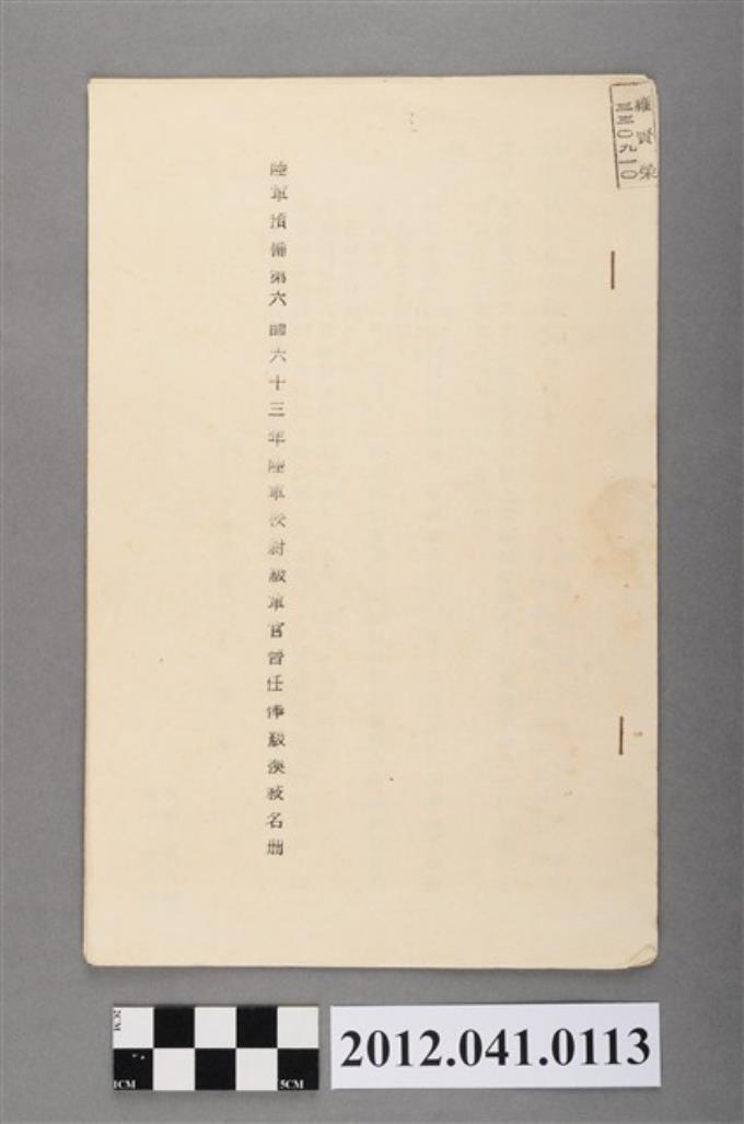 民國63年陸軍預備第六師司令部人事調職公文副本