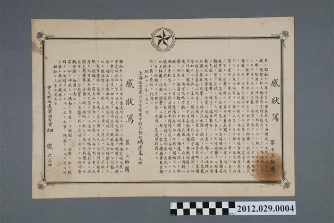 昭和十三年鳩彥王與畑俊六給第十三師團之感狀寫