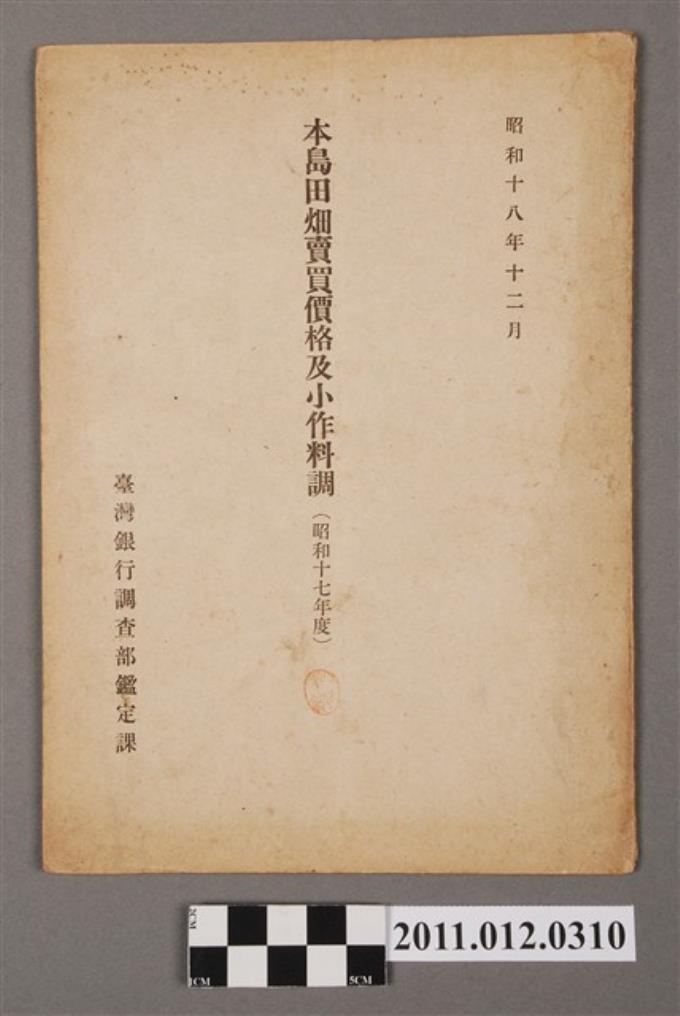 臺灣銀行調查部鑑定課發行《本島田畑賣買價格及小作料調》