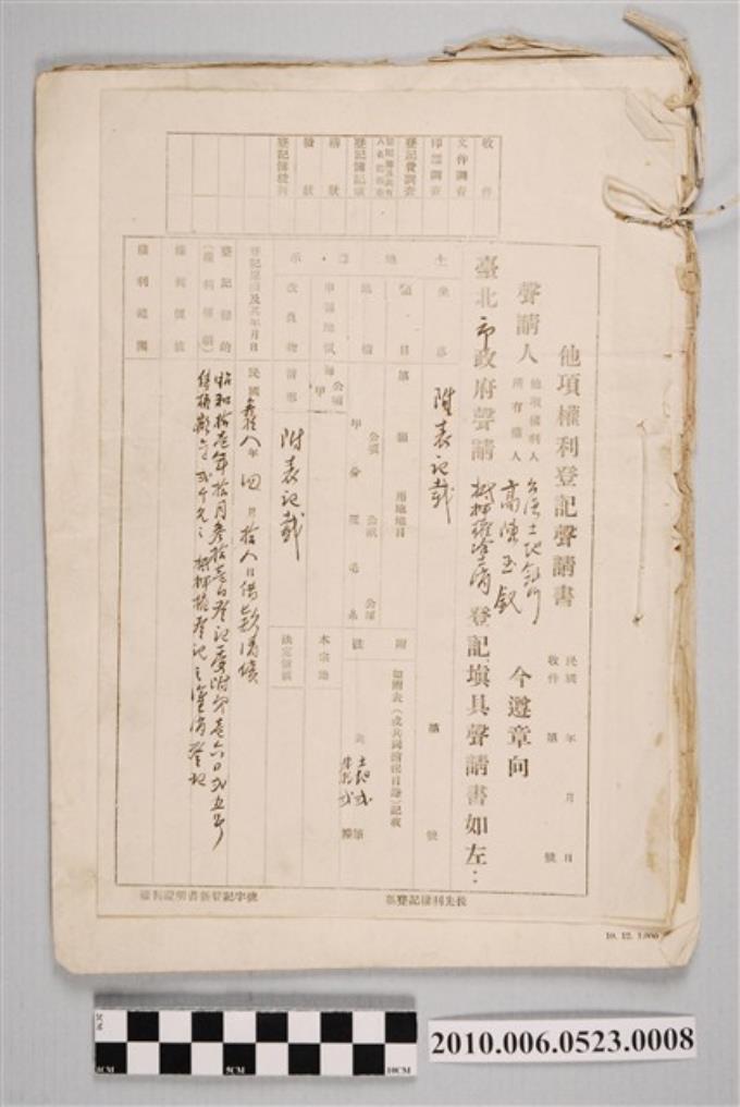 民國38年高陳玉釵與臺灣土地銀行向臺北市政府聲請抵押權塗銷登記聲請書