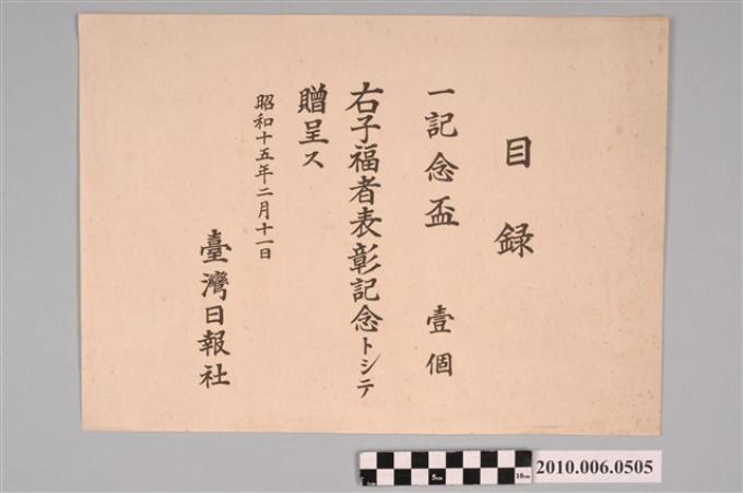 昭和15年臺灣日報社給紀念盃贈與證明單
