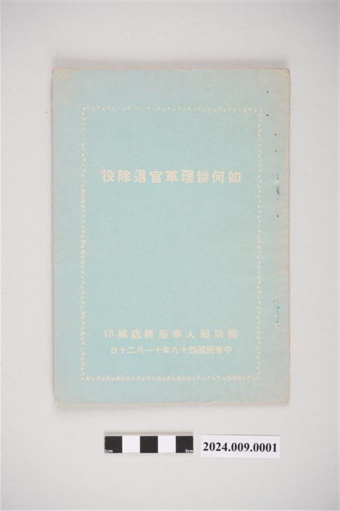 中華民國49年11月20日國防部人事服務處編印《如何辦理軍官退除役》