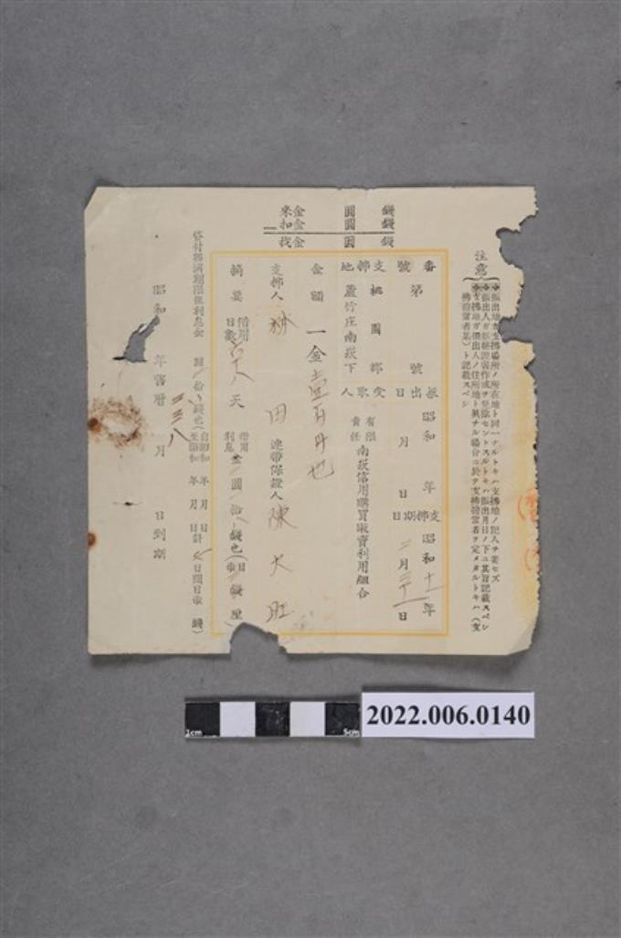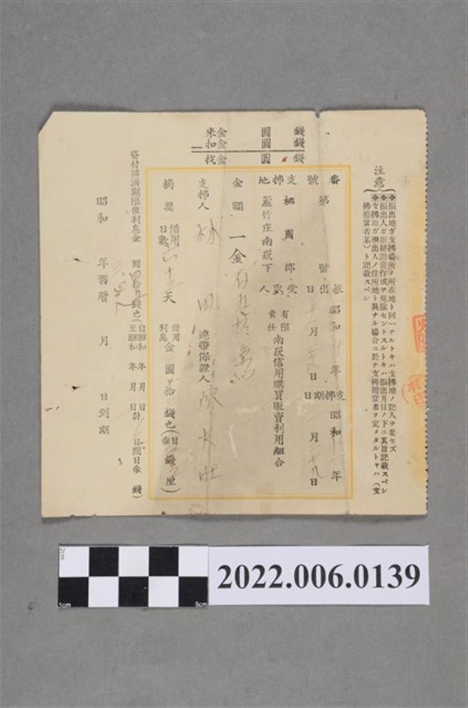 林田昭和11年南崁信用購買販賣利用組合貸付辦濟期限徵利息金單