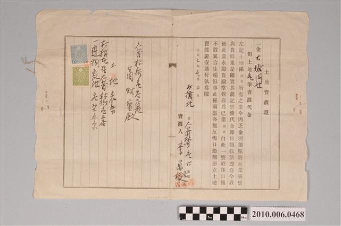 大正7年給李萬居給蕭財寶土地土地買帶證明書