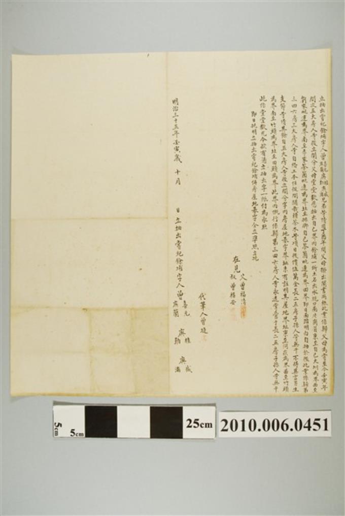 明治35年曾喜元等立抽出嘗祀餘埔契字