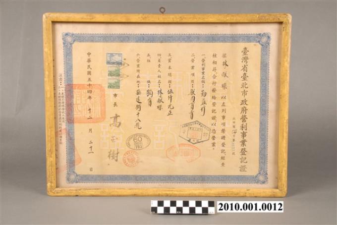 民國54年「勤益行」豬肉店營利事業登記證