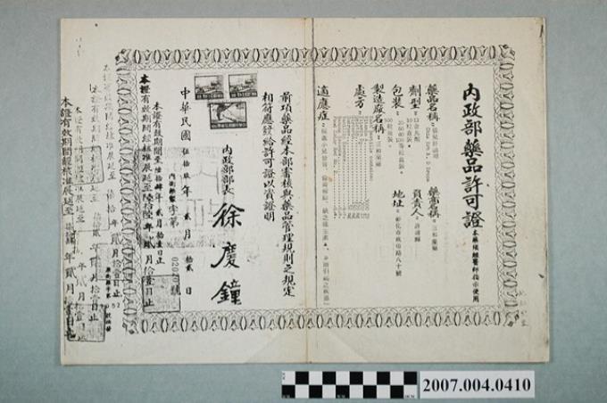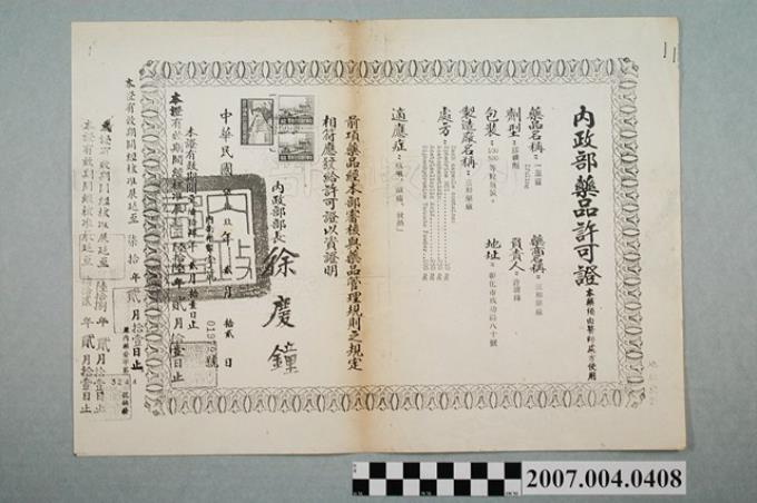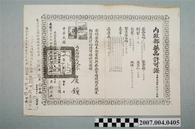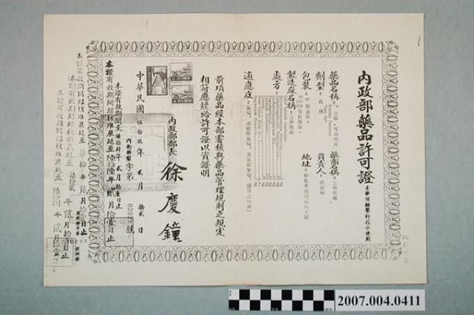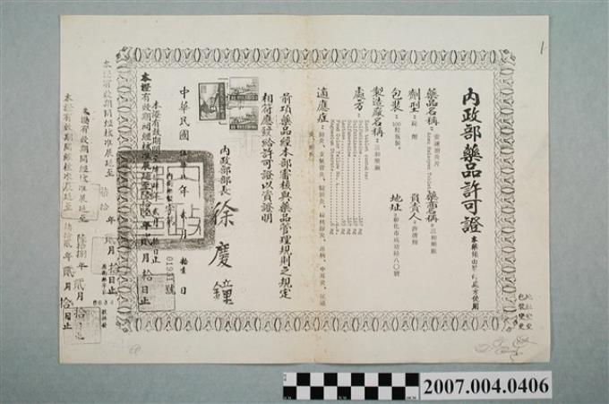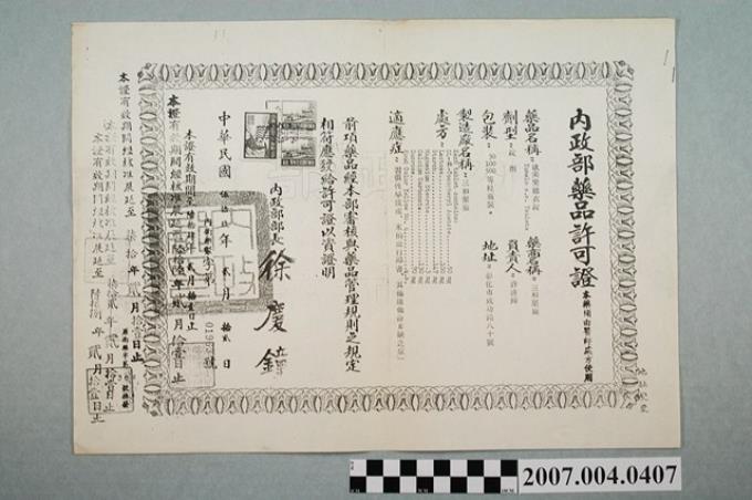 三和藥廠一服靈內政部藥品許可證影本