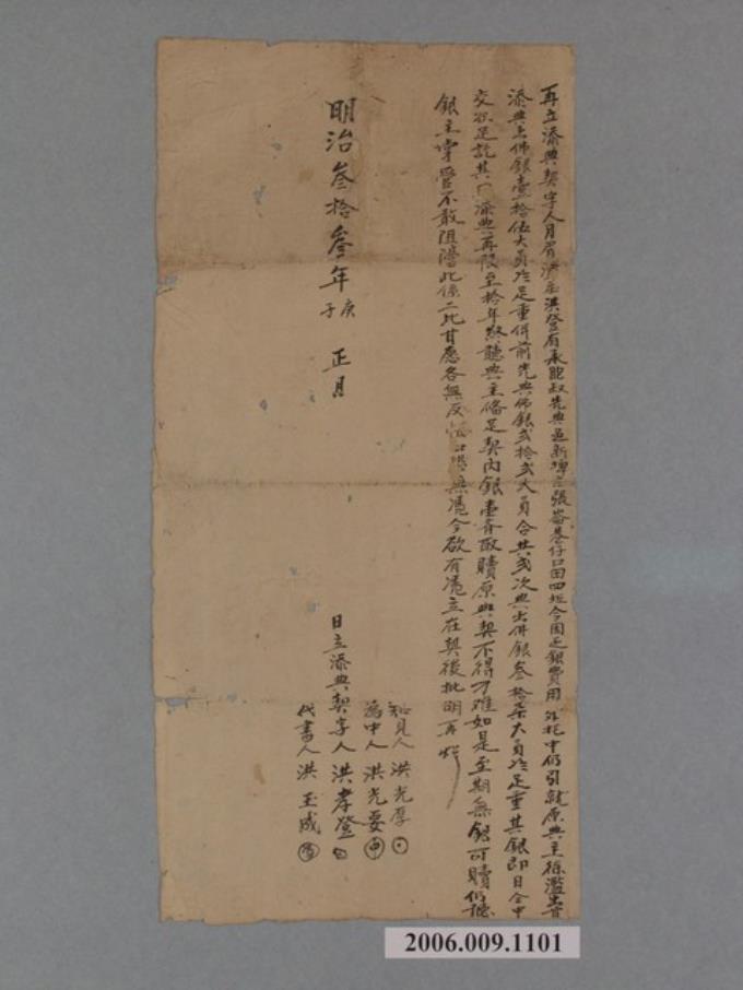 同治12年大槺榔保新埤庄洪搖等仝立鬮書字