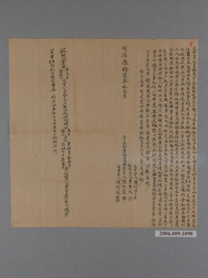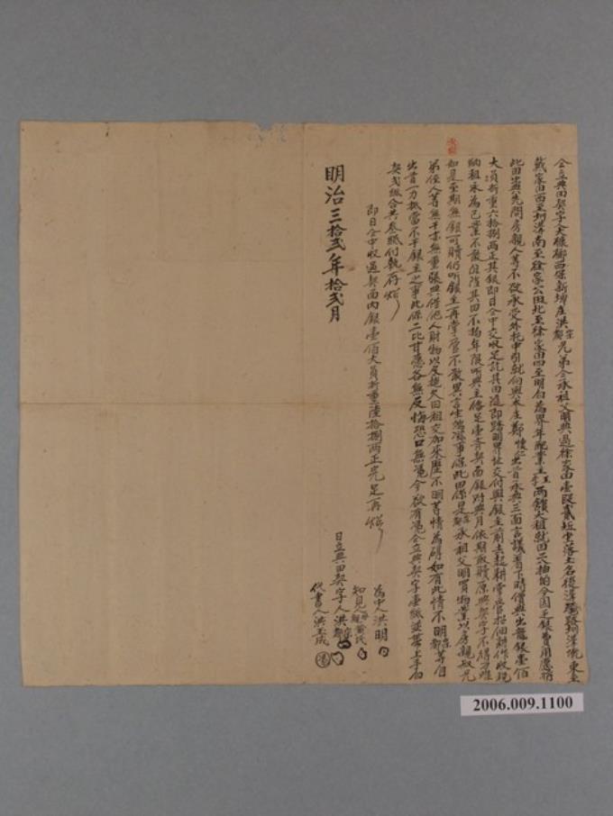 明治32年大槺榔西保新埤庄洪宗等立典田契字