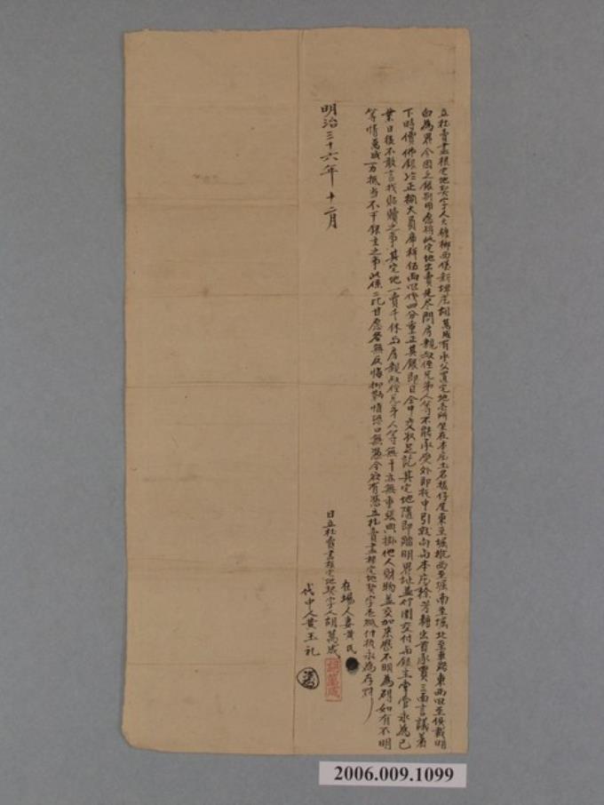 明治35年大槺榔保新埤庄黃崑等立賣杜盡根契字