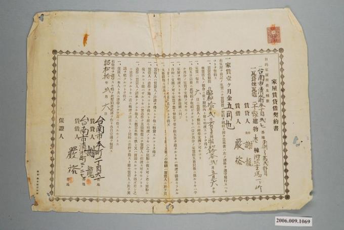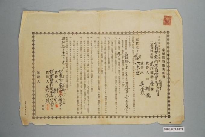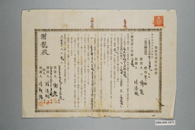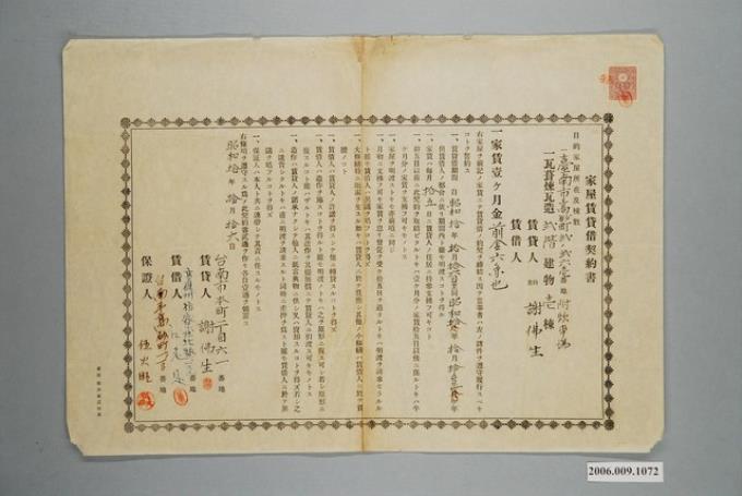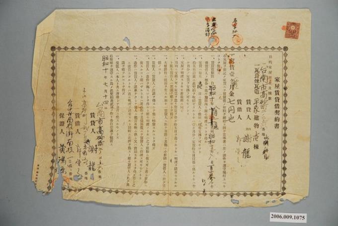 昭和10年臺南市謝龍家屋賃貸借契約書