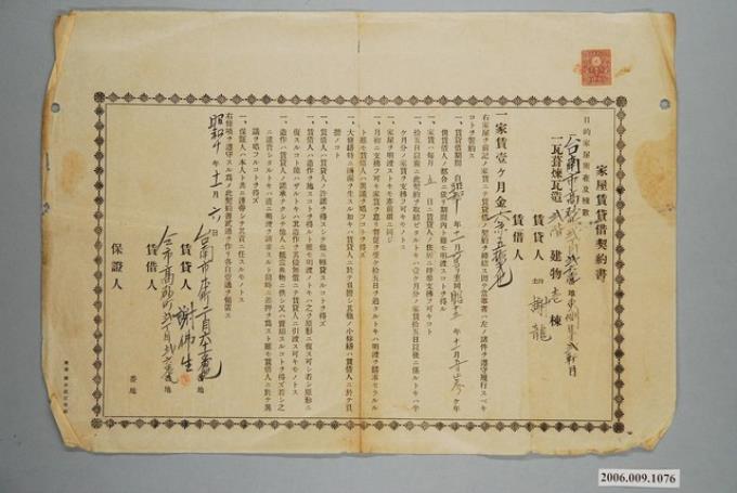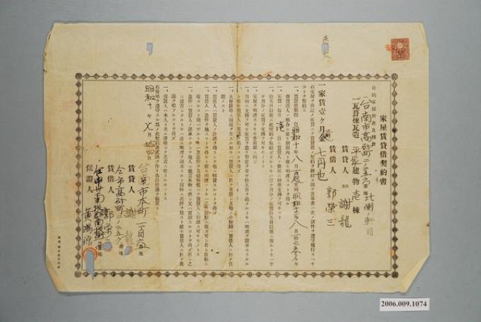 昭和7年臺南市謝龍家屋賃貸借契約書