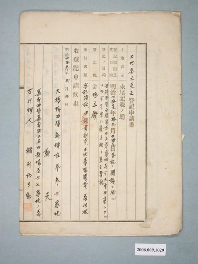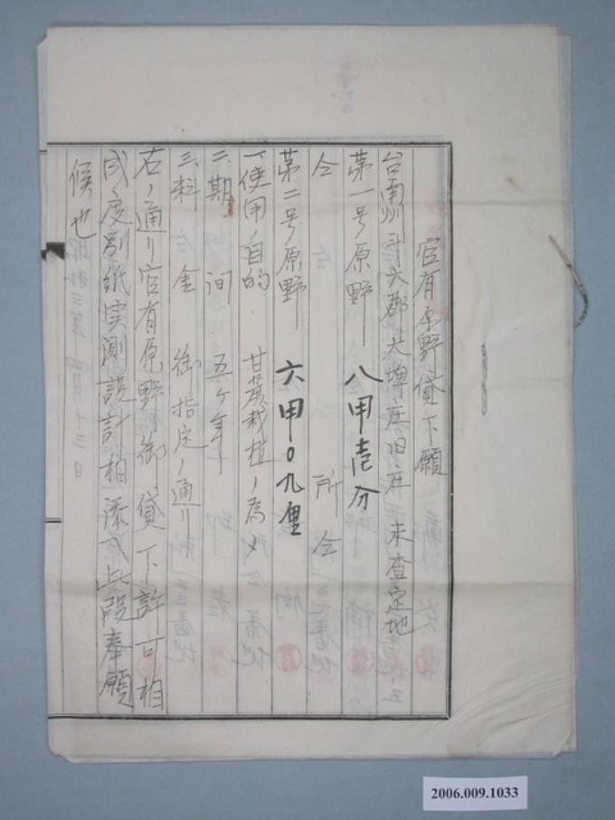 昭和3年鄭炎等七人給臺南州知事官有原野貸下申請書