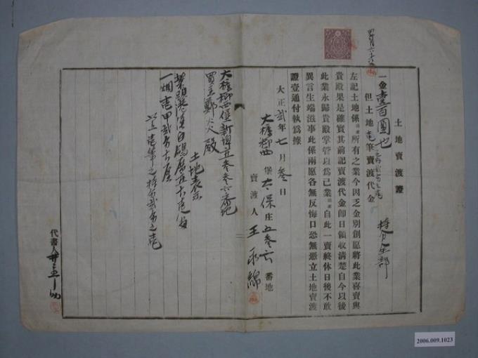 昭和13年鄭炎給簡平山林豫約賣渡契約證書