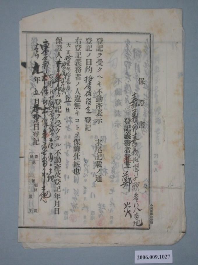 大正10年白鴿厝與新埤土地抵當移轉登記