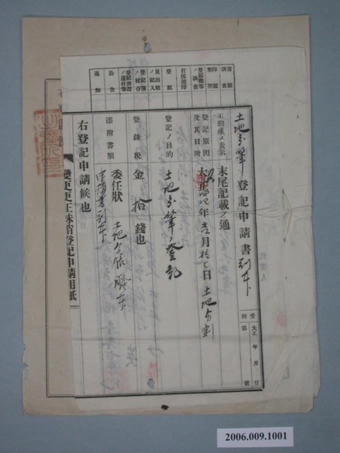 大正12年鄭炎立土地分筆登記申請書副本
