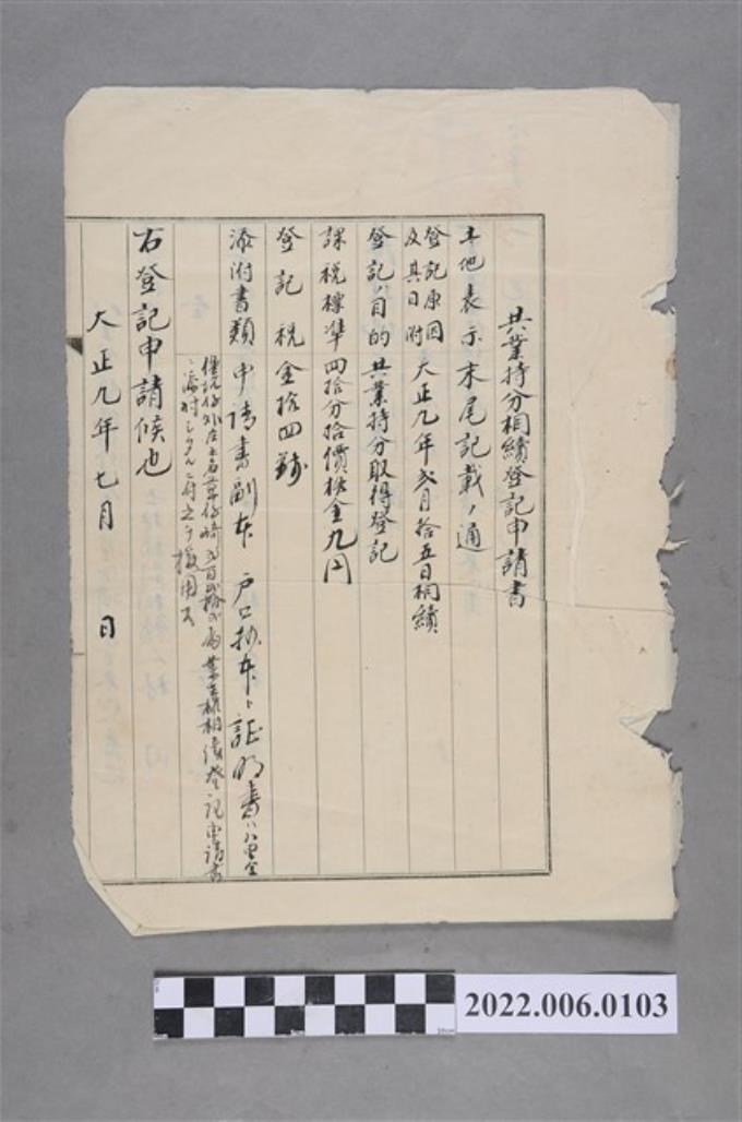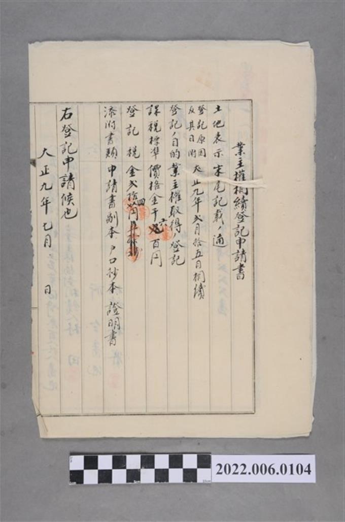 林田等2人大正9年業主權相續登記申請書
