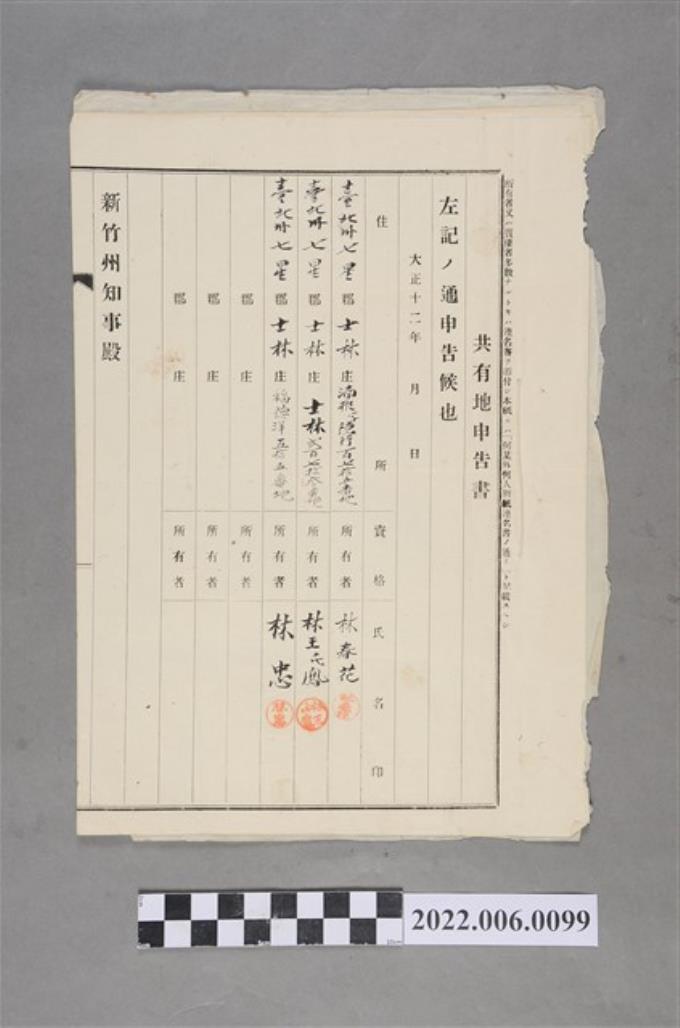 林春花等3人大正12年共有地申告書