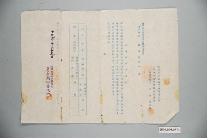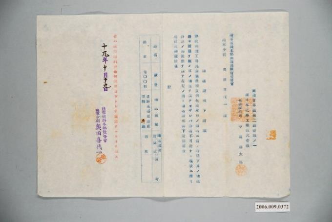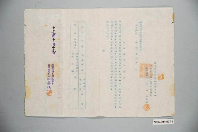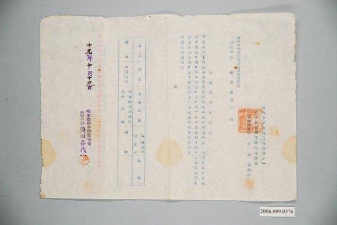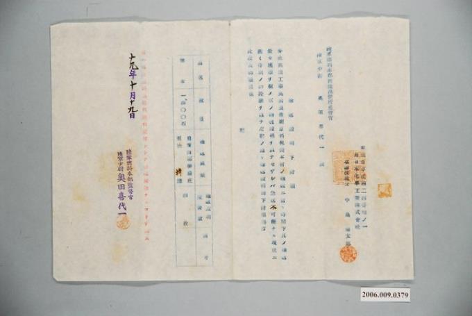 昭和19年旗山郡美濃庄至楠梓驛輸送證明申請書