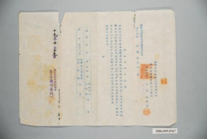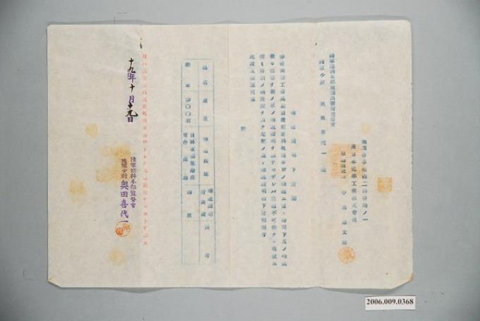 昭和19年屏東郡里港庄至臺南驛輸送證明申請書