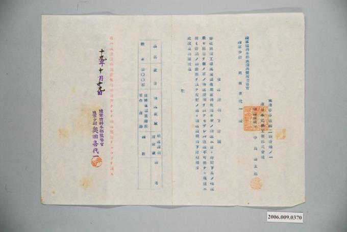 昭和19年旗山郡美濃庄至臺南驛輸送證明申請書