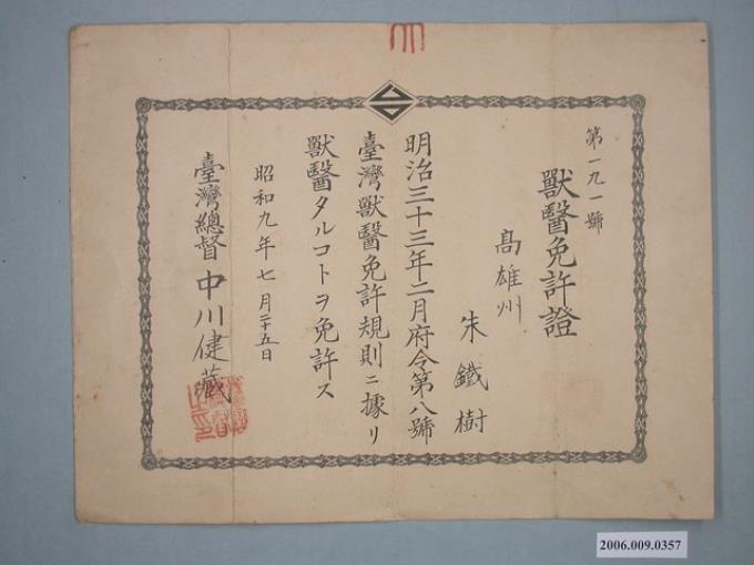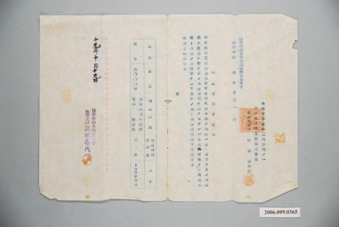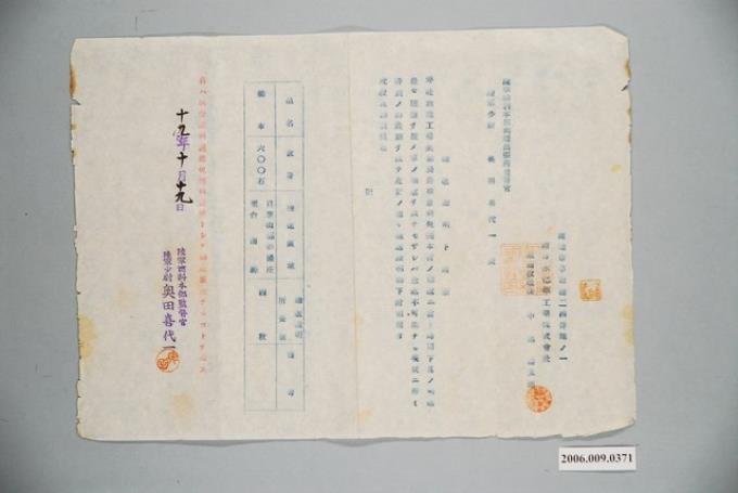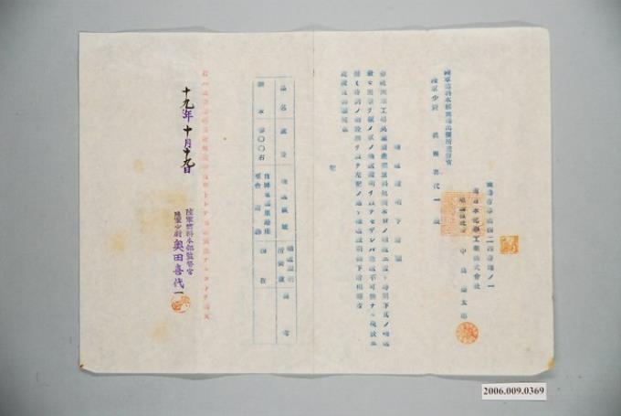 昭和19年旗山郡六龜庄至同美濃庄輸送證明申請書