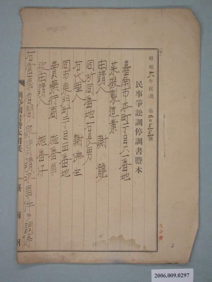 昭和17年臺南市高額貯蓄組合發給謝龍查定通知書