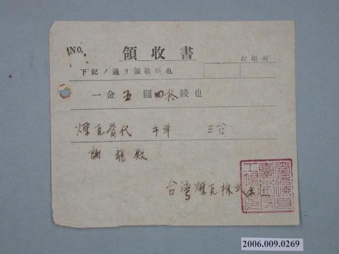 臺灣煉瓦株式會社給謝龍收據