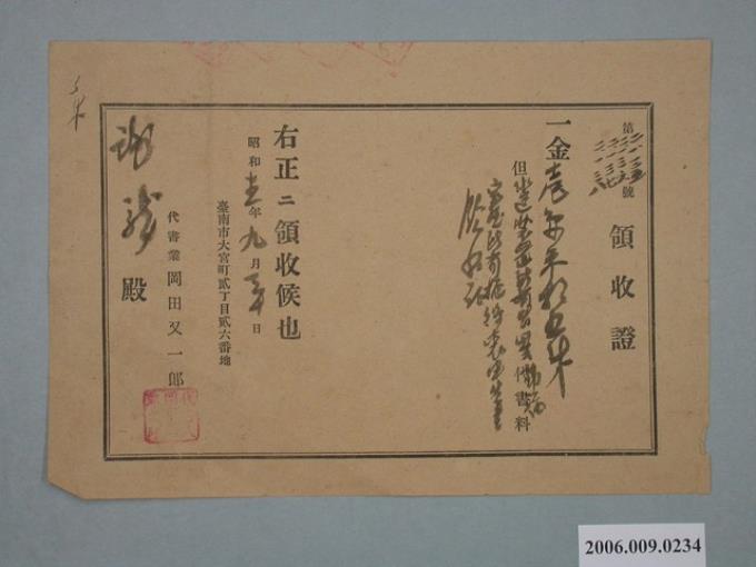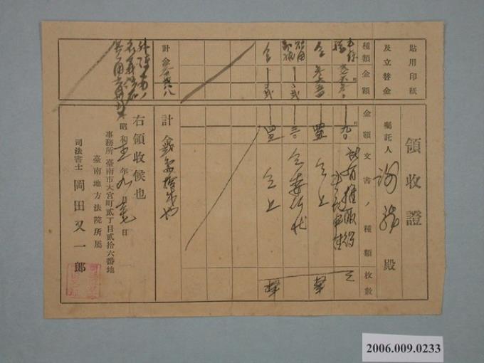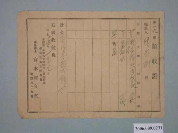 昭和14年司法書士宮本彌久次給陳炎樹收據