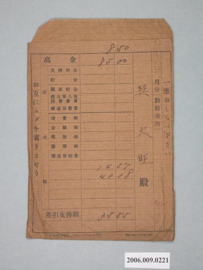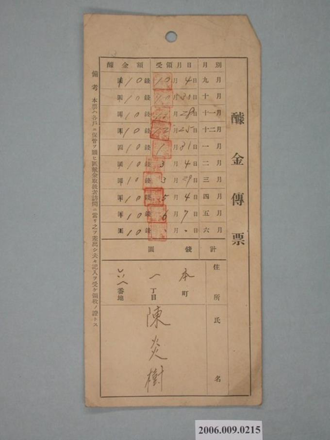 昭和14年謝龍繳付國防義會臺南市支會金額單據