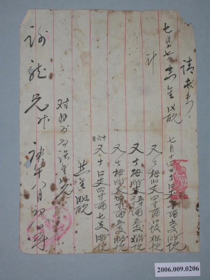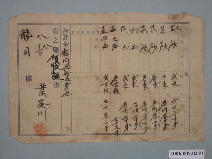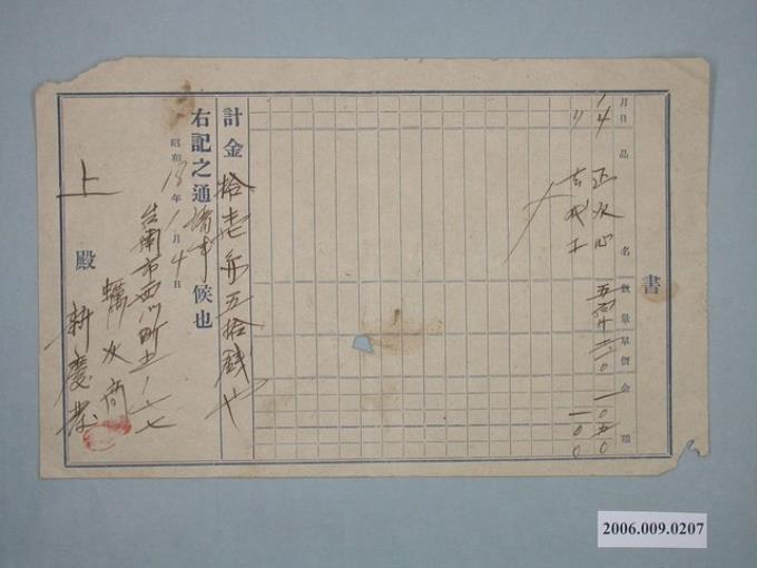 昭和18年臺南市蠣灰商新慶發付款請求書