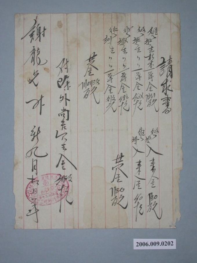 昭和16年臺南市福住町第二保保正給王延壽徵收告知書與收據