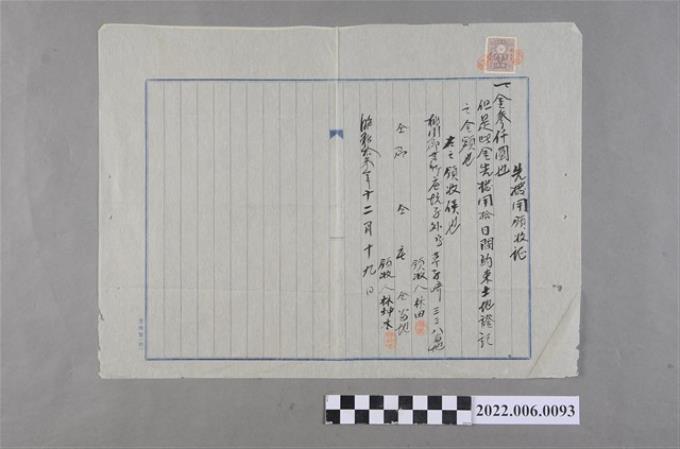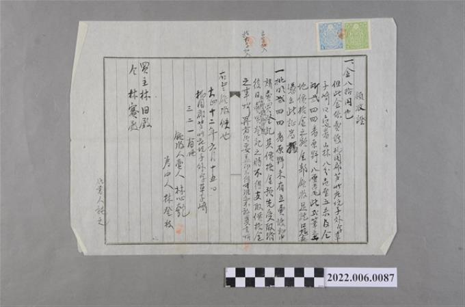 陳水順昭和4年收水租及廢埤塘賦課領收證