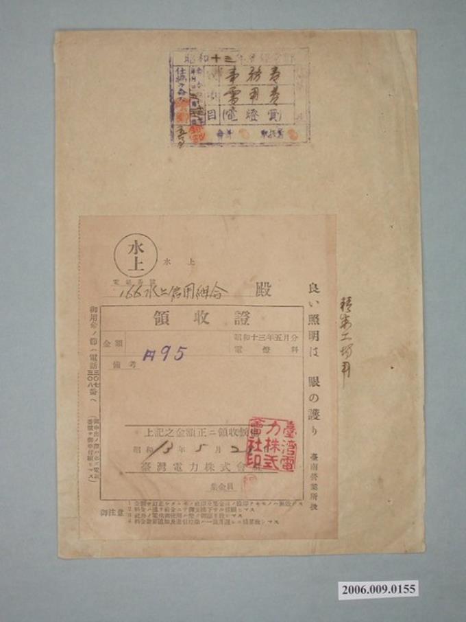 昭和13年臺灣電力株式會社給水上信用組合收據