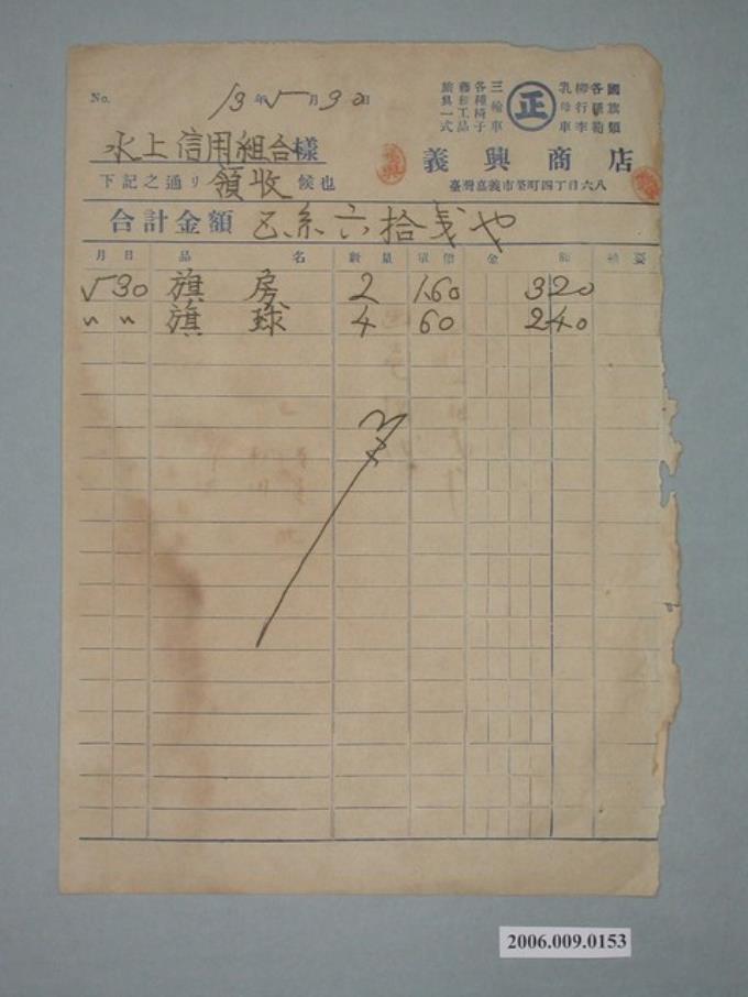 昭和13年嘉義市義興商店給水上信用組合收據