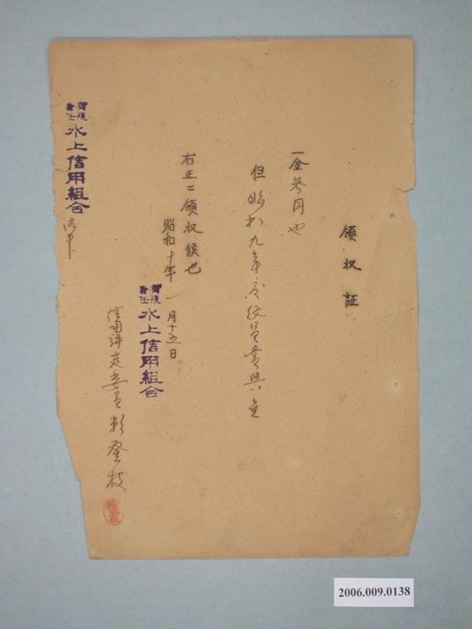 昭和10年水上信用組合信用評定委員給水上信用組合收據
