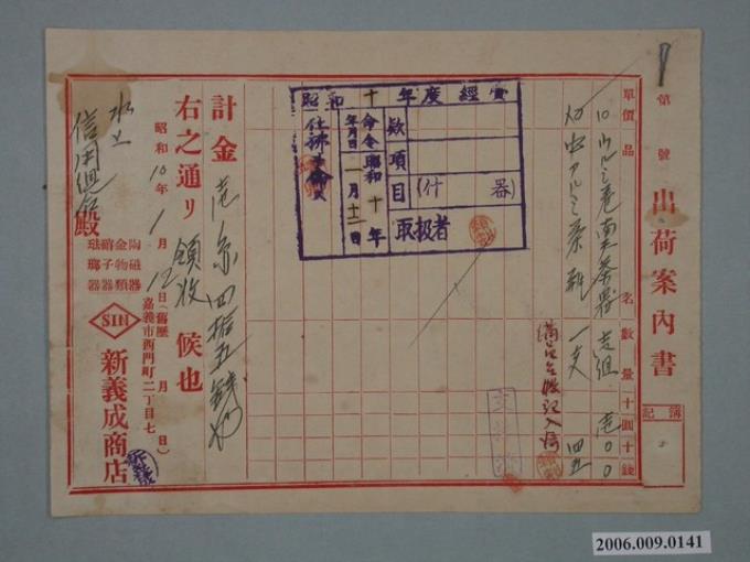 昭和10年嘉義市新義成商店給水上信用組合估價單