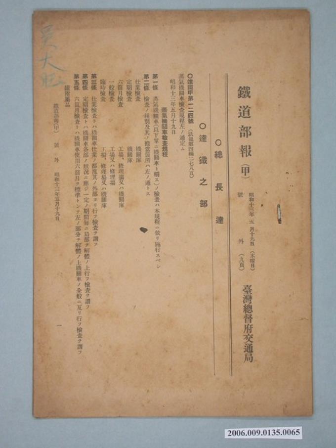 昭和13年臺灣總督府交通局《鐵道部報(甲)》