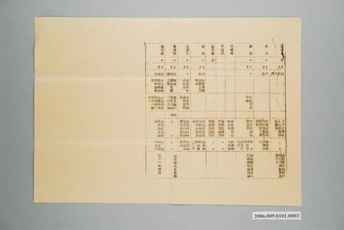 《臺灣地區在逃叛亂匪犯通緝名冊》1組3張